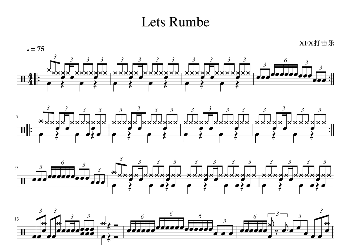 比赛曲目《Lets Rumbe》架子鼓谱