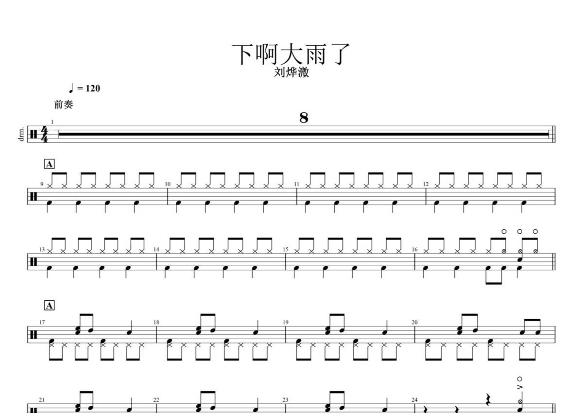 《下啊大雨了》是刘烨㵟演唱的一首歌曲,这份架子鼓谱共有两张高清图谱,图谱由 @小东鼓谱 编配上传,图谱使用五线谱编配,使用这份下啊大雨了架子鼓谱,你将能够轻松地敲打出这首刘烨㵟的下啊大雨了,快来尝试吧。