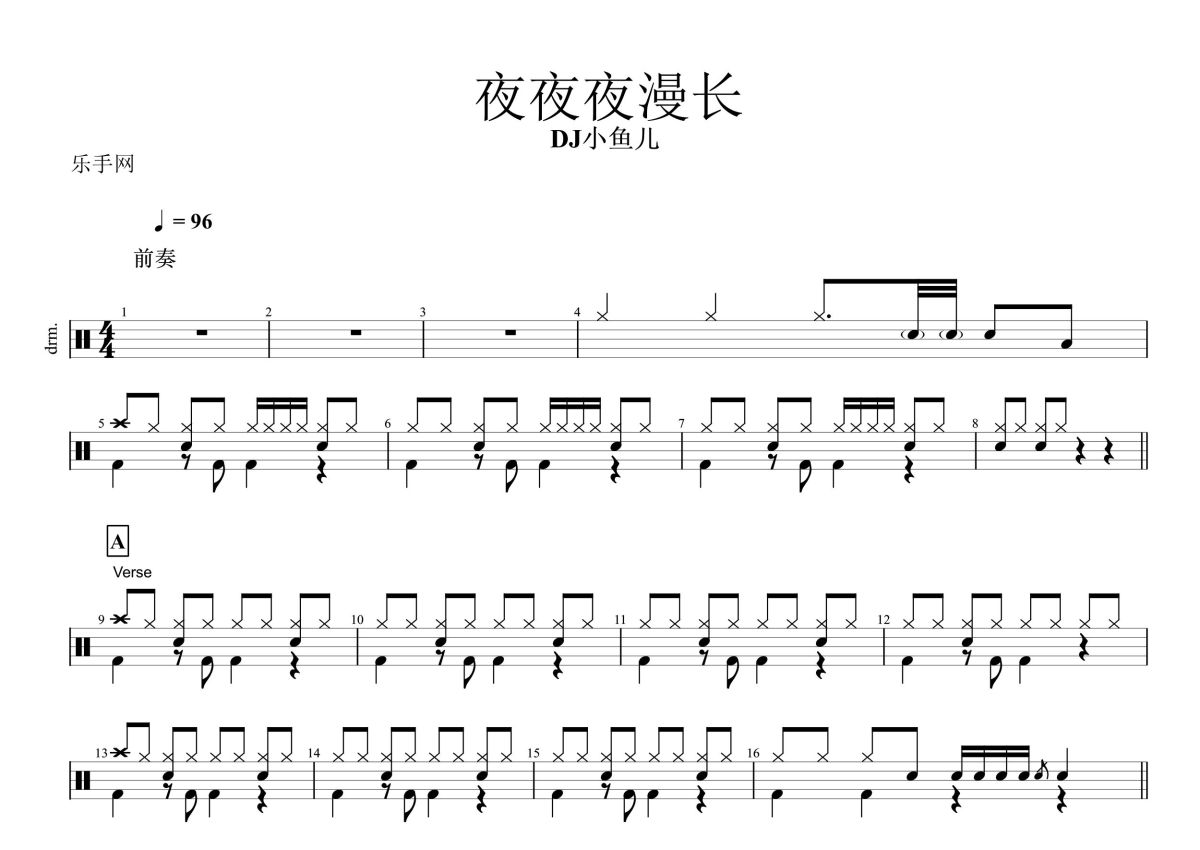 DJ小鱼儿《夜夜夜漫长》鼓谱 - 架子鼓谱