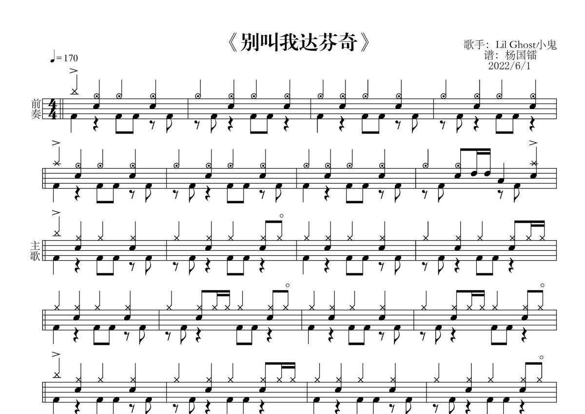 Lil Ghost小鬼《别叫我达芬奇》架子鼓谱