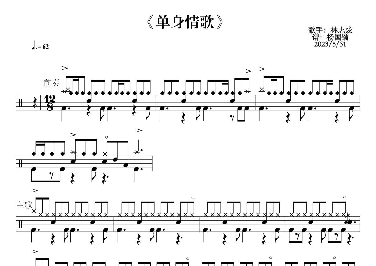 《单身情歌》是林志炫演唱的一首歌曲,拍号为4/4拍,歌曲速度为每分钟62拍,这份架子鼓谱共有三张高清图谱,图谱由 @抓猫儿「镭」 编配上传,图谱使用五线谱编配,使用这份单身情歌架子鼓谱,你将能够轻松地敲打出这首林志炫的单身情歌,快来尝试吧。