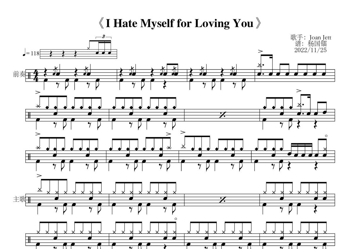 Joan Jett/The Blackhearts《I Hate Myself for Loving You》架子鼓谱