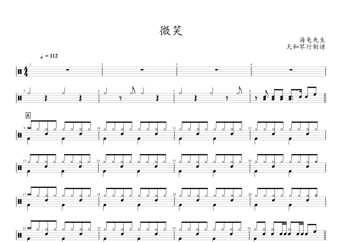 海龟先生《微笑》架子鼓谱