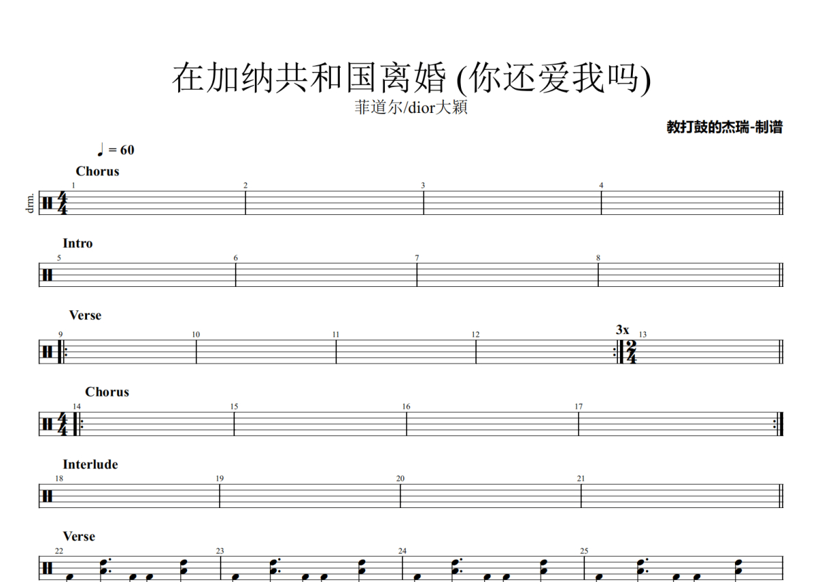 菲道尔/dior大穎《在加纳共和国离婚 (你还爱我吗)》架子鼓谱
