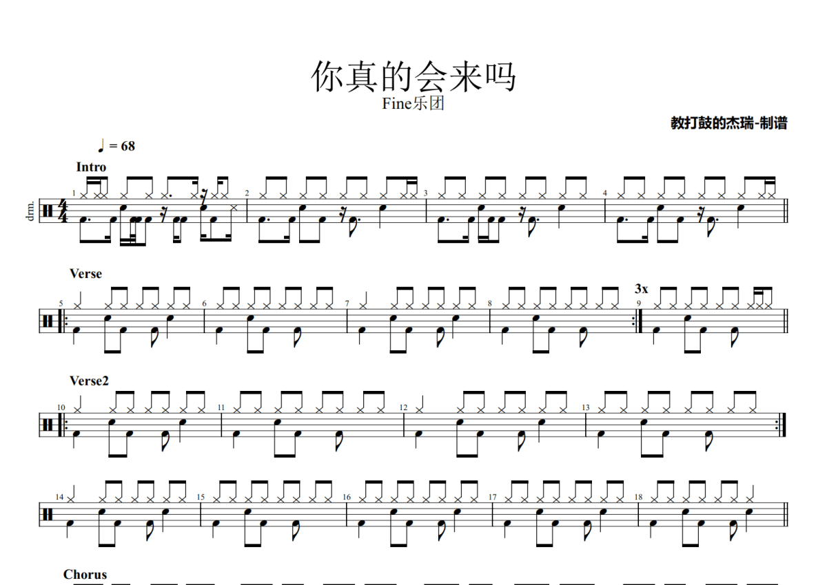 Fine乐团《你真的会来吗》架子鼓谱