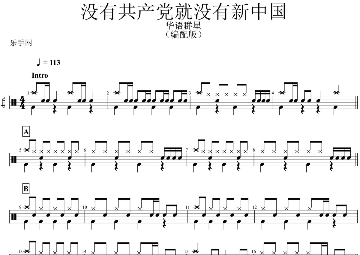 华语群星《没有共产党就没有新中国》鼓谱 - 架子鼓谱