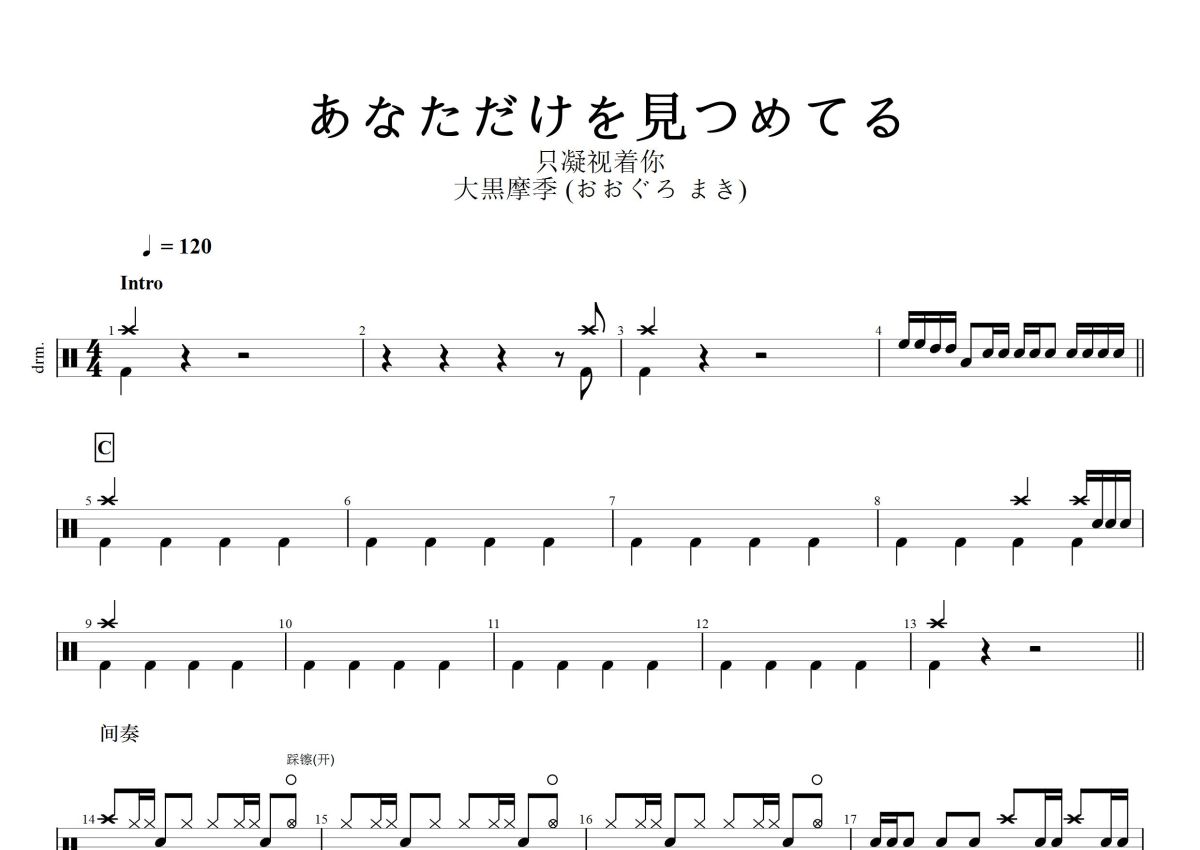 大黒摩季 (おおぐろ まき)《あなただけを見つめてる》鼓谱 - 架子鼓谱