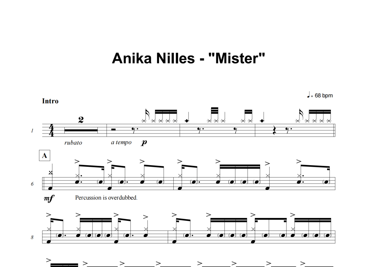 Anika Nilles《Mister》架子鼓谱