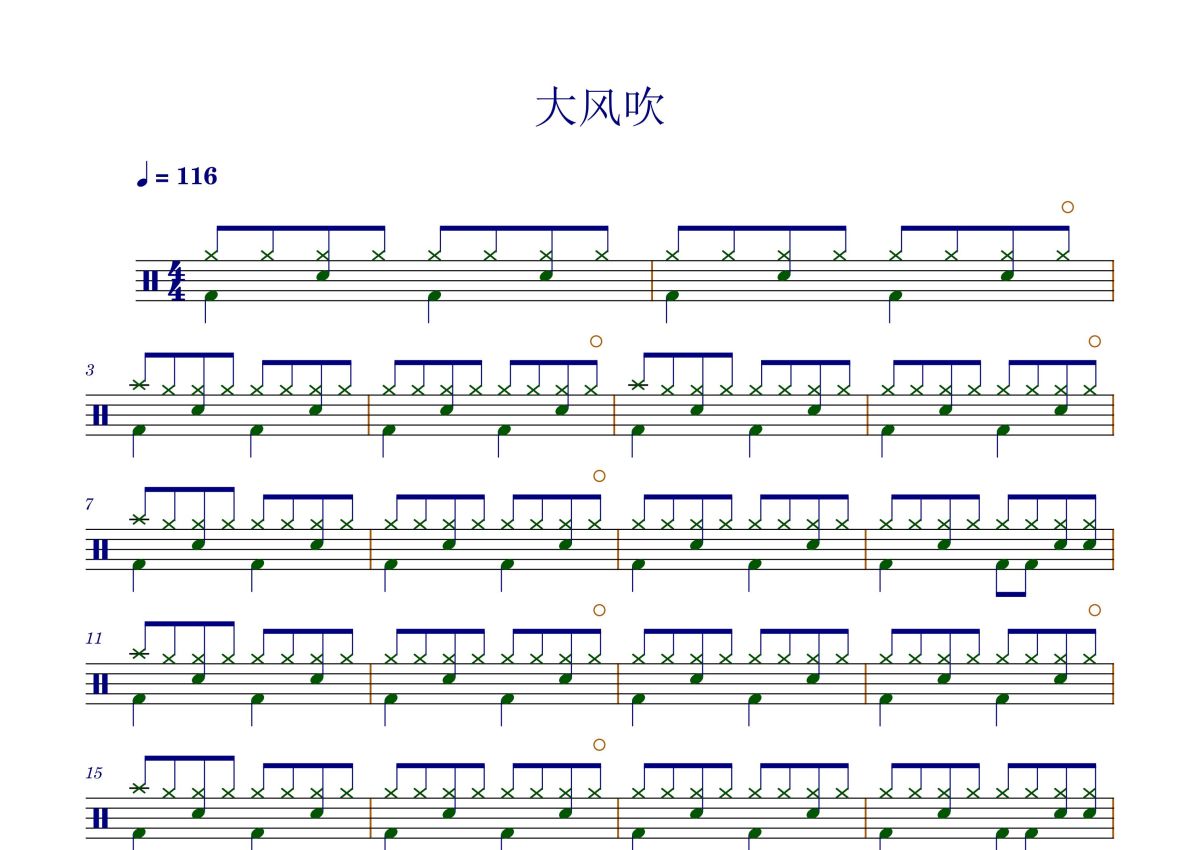 《大风吹》是王赫野演唱的一首歌曲,这份鼓谱共有两张高清图谱,图谱由 @打鼓谱 编配上传,图谱使用五线谱编配,使用这份大风吹架子鼓谱,你将能够轻松地敲打出这首王赫野的大风吹,快来尝试吧。歌曲名:大风吹,歌手名:王赫野,专辑名:大风吹。