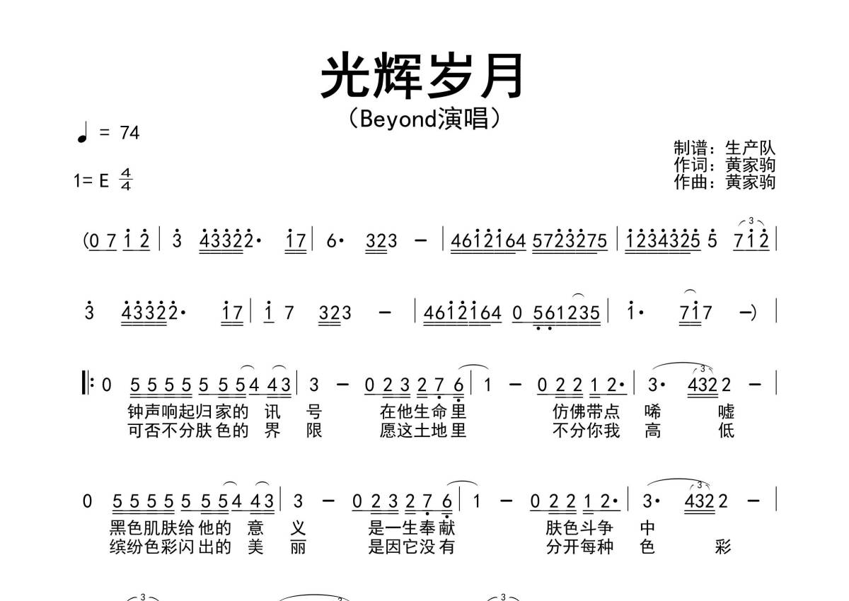 《光辉岁月》是Beyond演唱的一首歌曲,拍号为4/4拍,歌曲速度为每分钟73拍,这份简谱共有一张高清图谱,图谱由 @生产队 编配上传Beyond演唱的歌曲《光辉岁月》简谱。