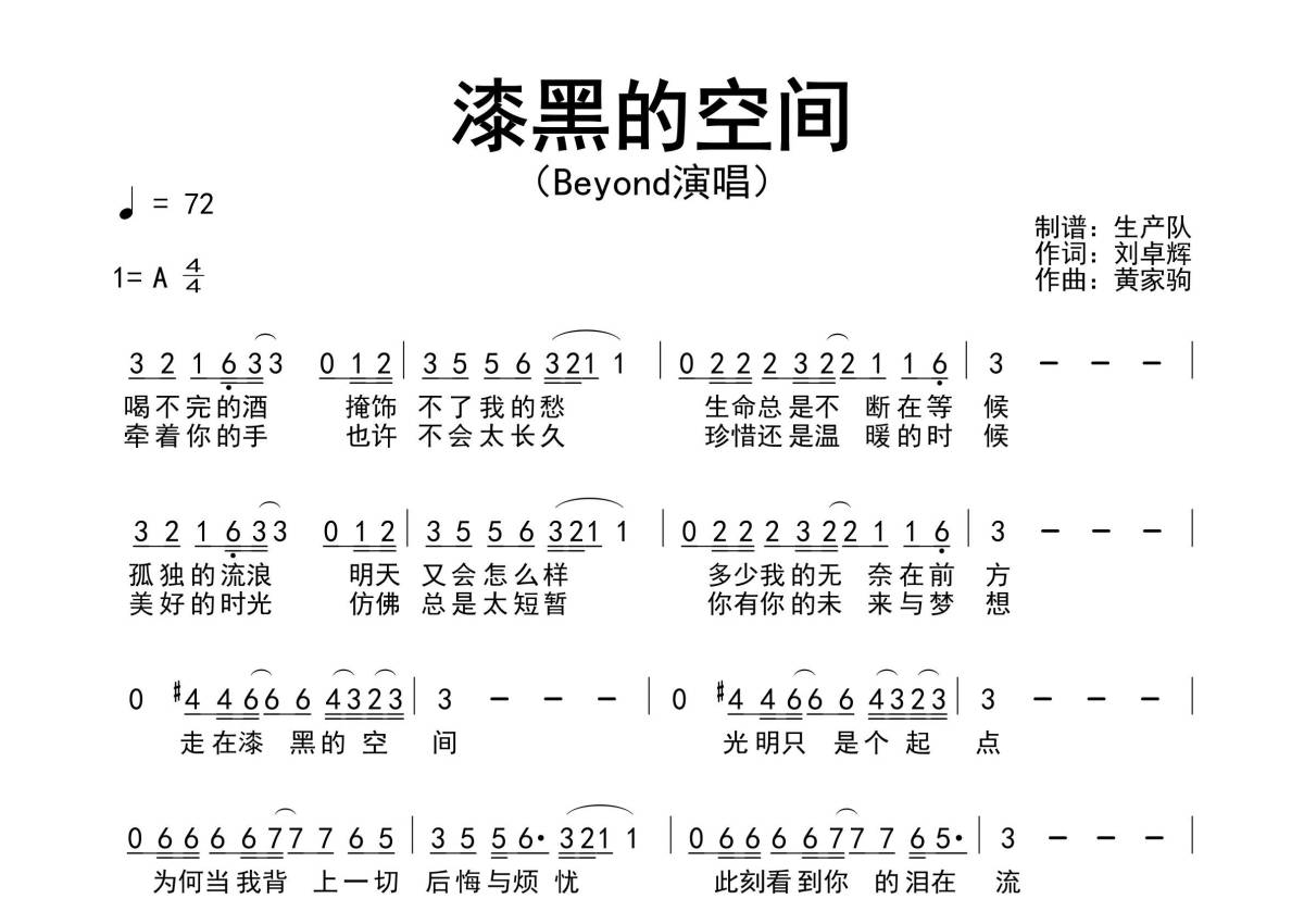 Beyond《漆黑的空间》简谱