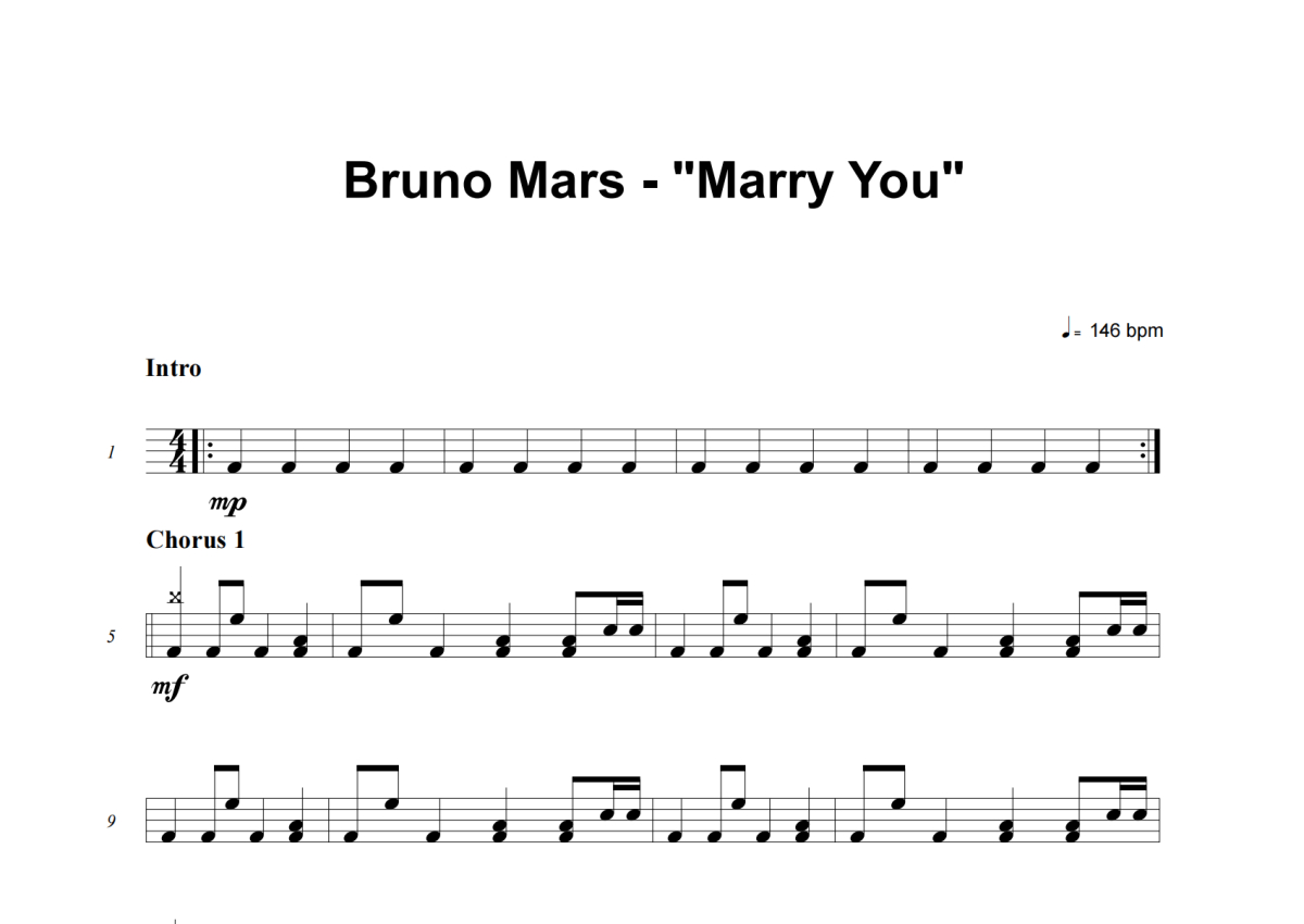 Bruno Mars《Marry You》架子鼓谱