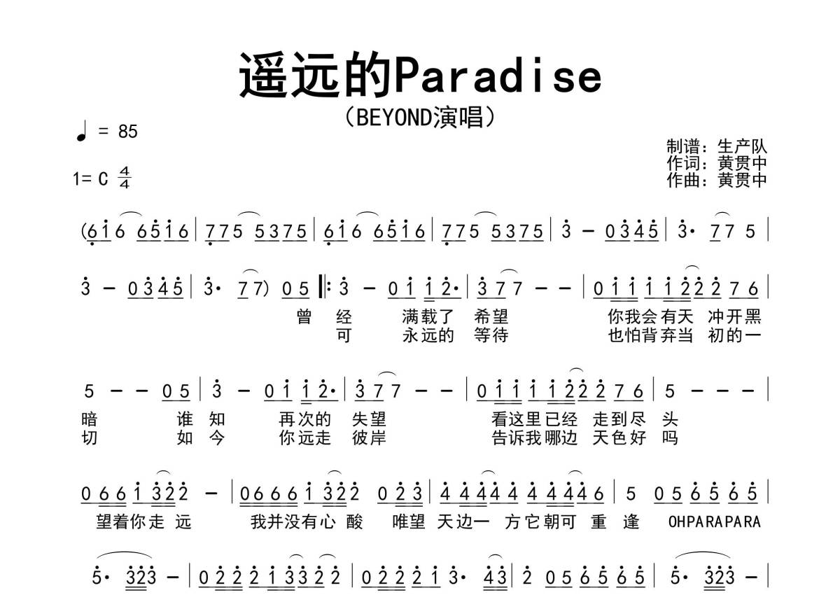 《遥远的Paradise》是Beyond演唱的一首歌曲,拍号为4/4拍,歌曲速度为每分钟85拍,这份简谱共有一张高清图谱,图谱由 @生产队 编配上传Beyond演唱的歌曲《遥远的Paradise》简谱。