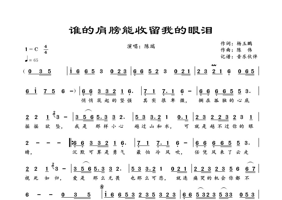 陈瑞《谁的肩膀能收留我的眼泪》简谱