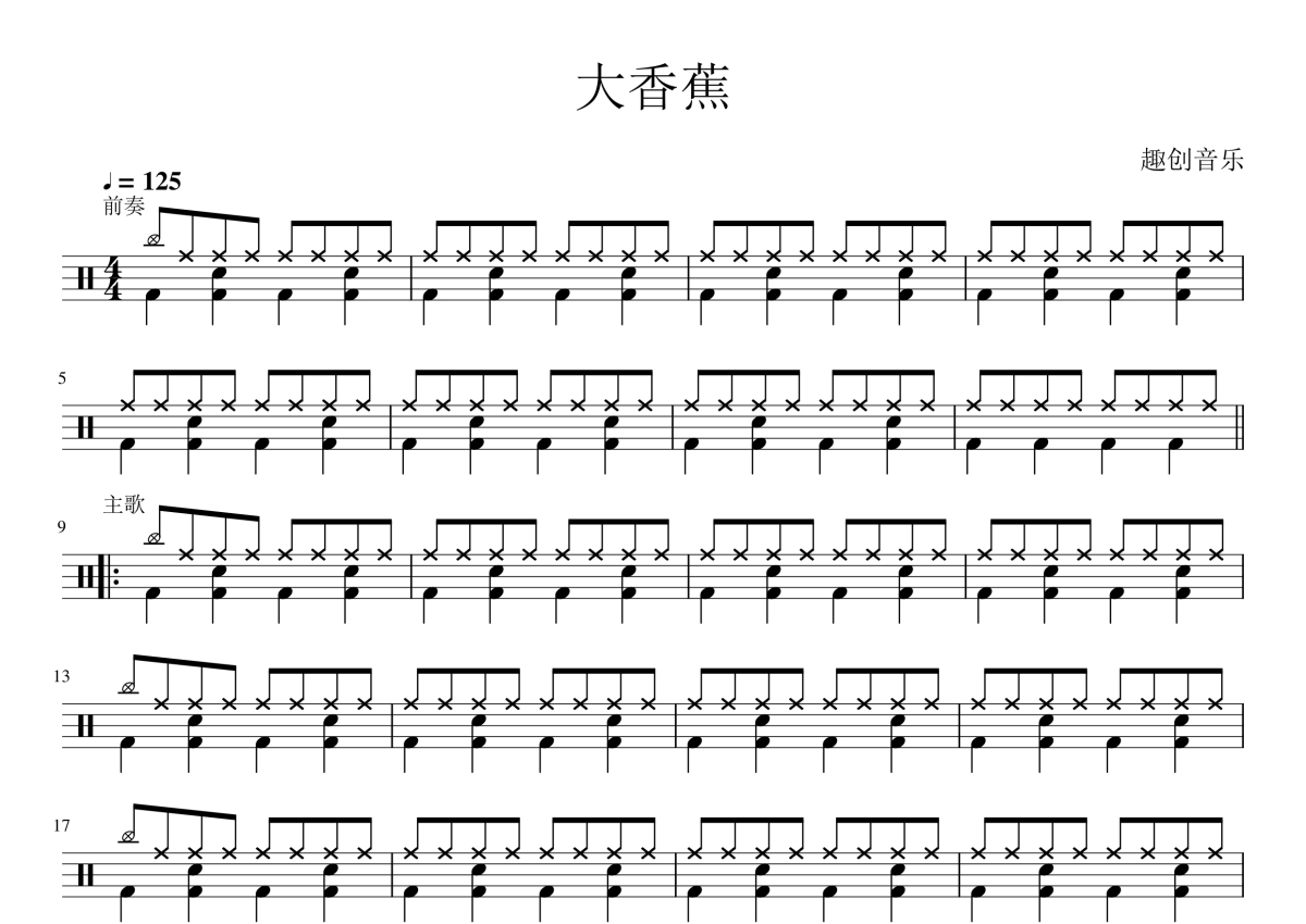 《大香蕉》是龙智祥_吴非华演唱的一首歌曲,拍号为4/4拍,这份架子鼓谱共有两张高清图谱,图谱由 @陈老师 编配上传,图谱使用五线谱编配,使用这份大香蕉架子鼓谱,你将能够轻松地敲打出这首龙智祥_吴非华的大香蕉,快来尝试吧。