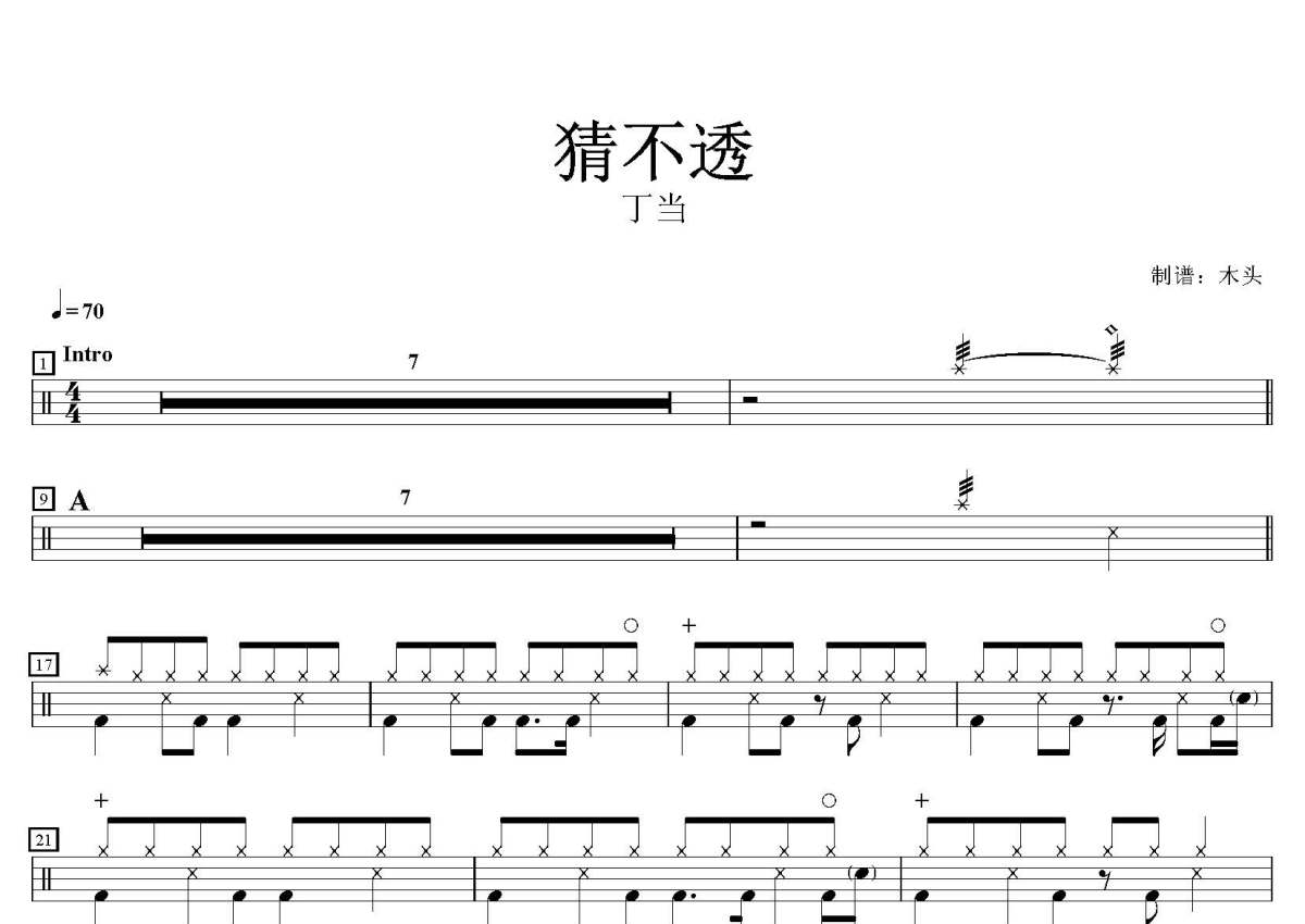 丁当《猜不透》鼓谱 - 架子鼓谱