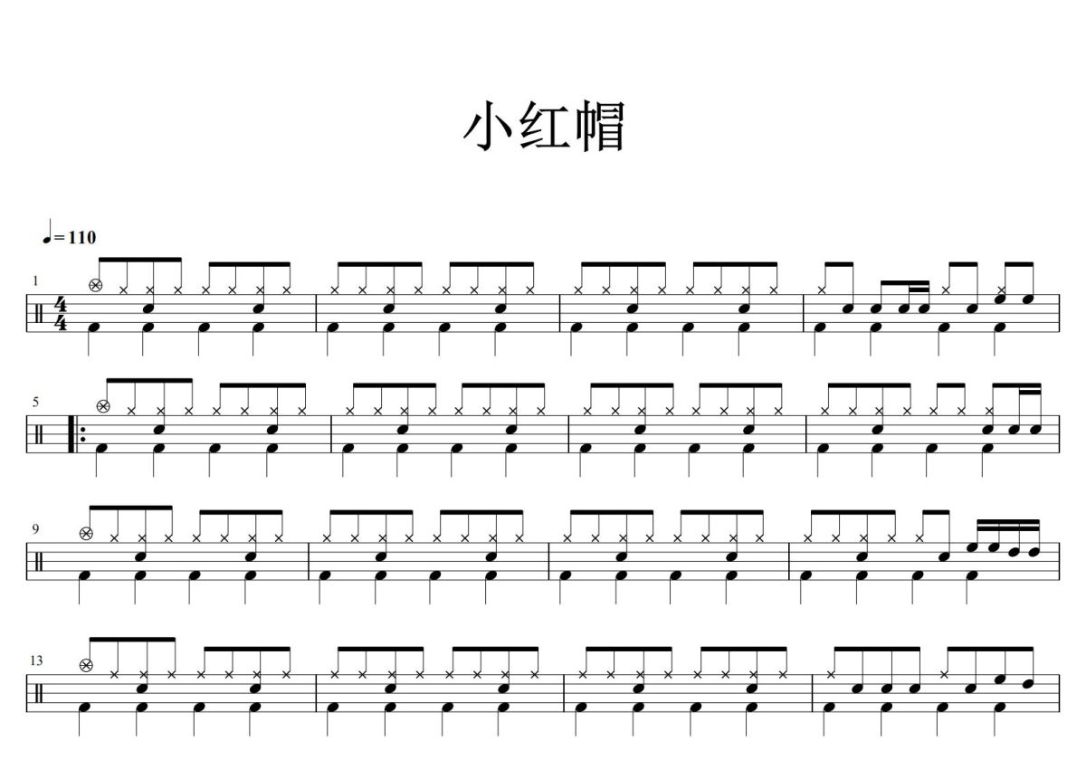 儿歌精选《小红帽》鼓谱 - 架子鼓谱