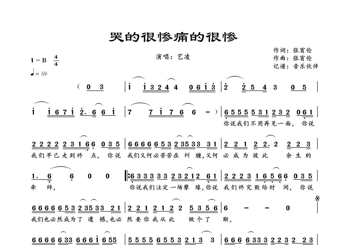 《哭的很惨痛的很惨》是艺凌演唱的一首歌曲,拍号为4/4拍,歌曲速度为每分钟59拍,这份简谱共有一张高清图谱,图谱由 @音乐伙伴 编配上传。
