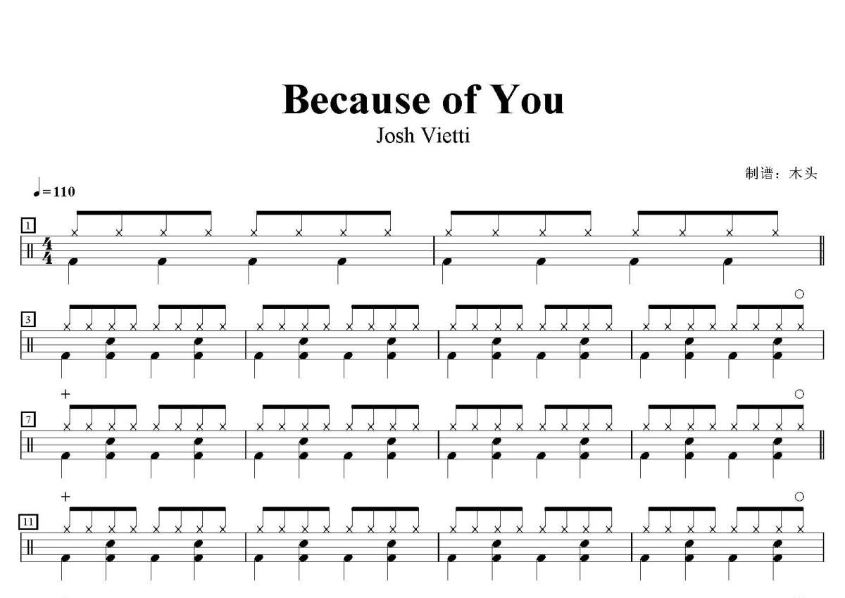 Josh Vietti《Because of You》鼓谱 - 架子鼓谱
