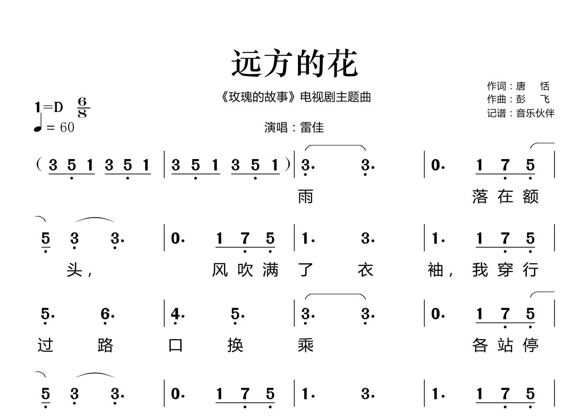 远方的花简谱 - 雷佳演唱