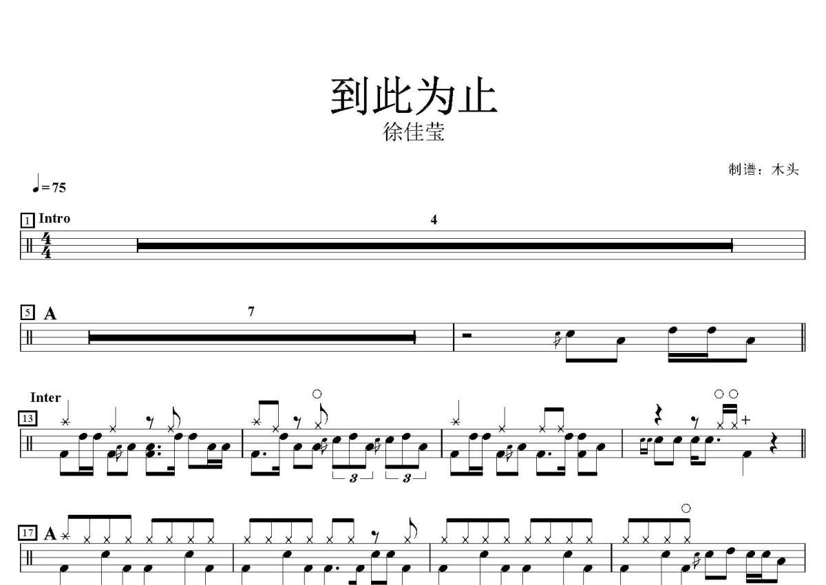 徐佳莹《到此为止》鼓谱 - 架子鼓谱