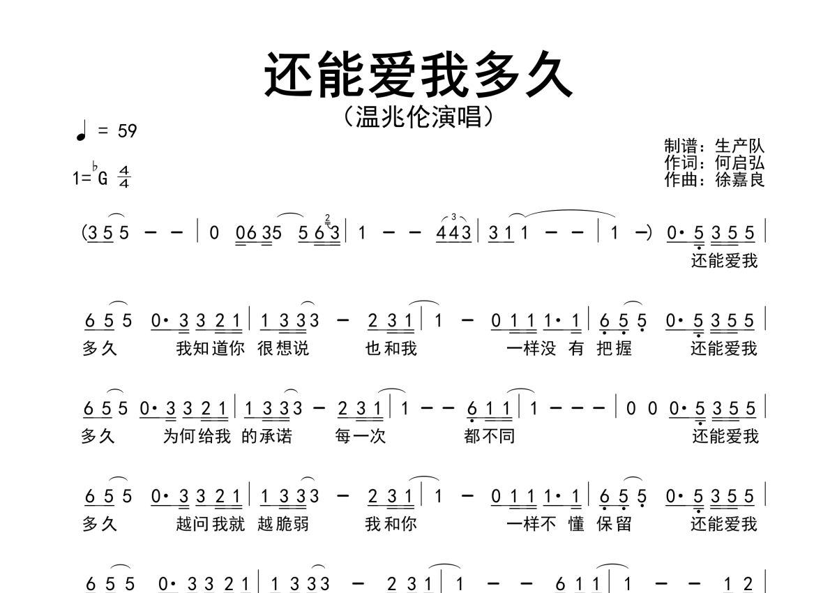 温兆伦《还能爱我多久》简谱 - 原版简谱