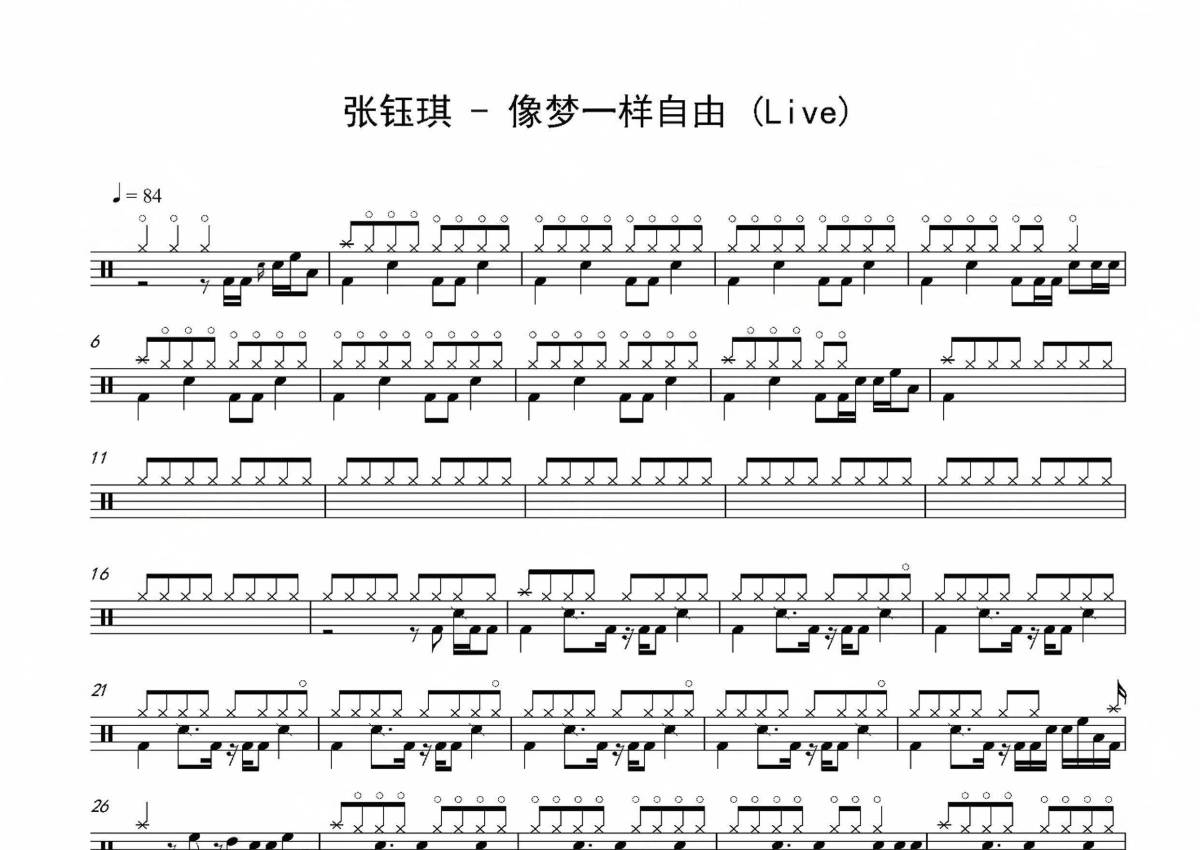 张钰琪《像梦一样自由 (Live)》架子鼓谱