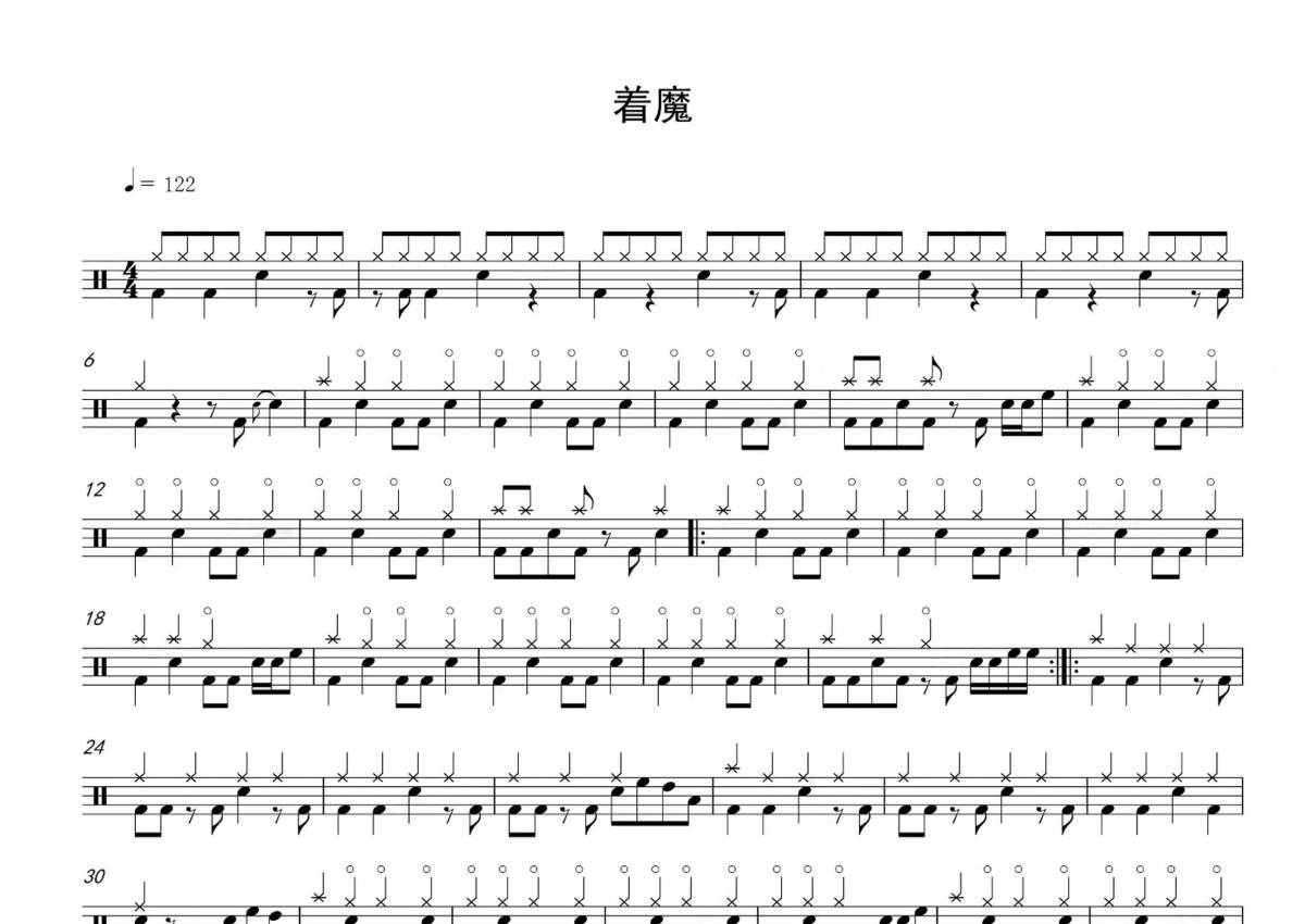 《着魔》是张杰演唱的一首歌曲,简化版,拍号为4/4拍,歌曲速度为每分钟122拍,这份架子鼓谱共有一张高清图谱,图谱由 @Sawubona 编配上传,图谱使用五线谱编配,使用这份着魔架子鼓谱,你将能够轻松地敲打出这首张杰的着魔,快来尝试吧。