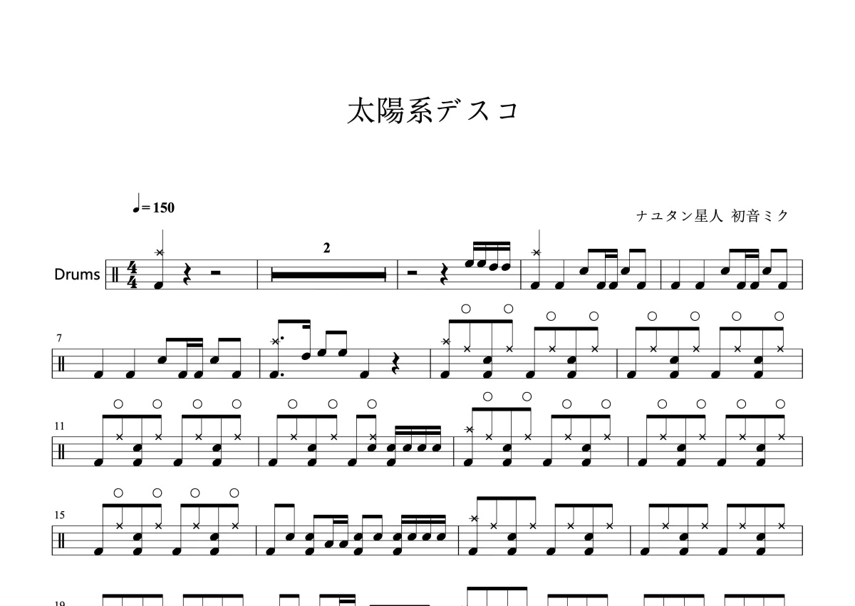 ナユタン星人,初音ミク《太陽系デスコ》鼓谱 - 架子鼓谱