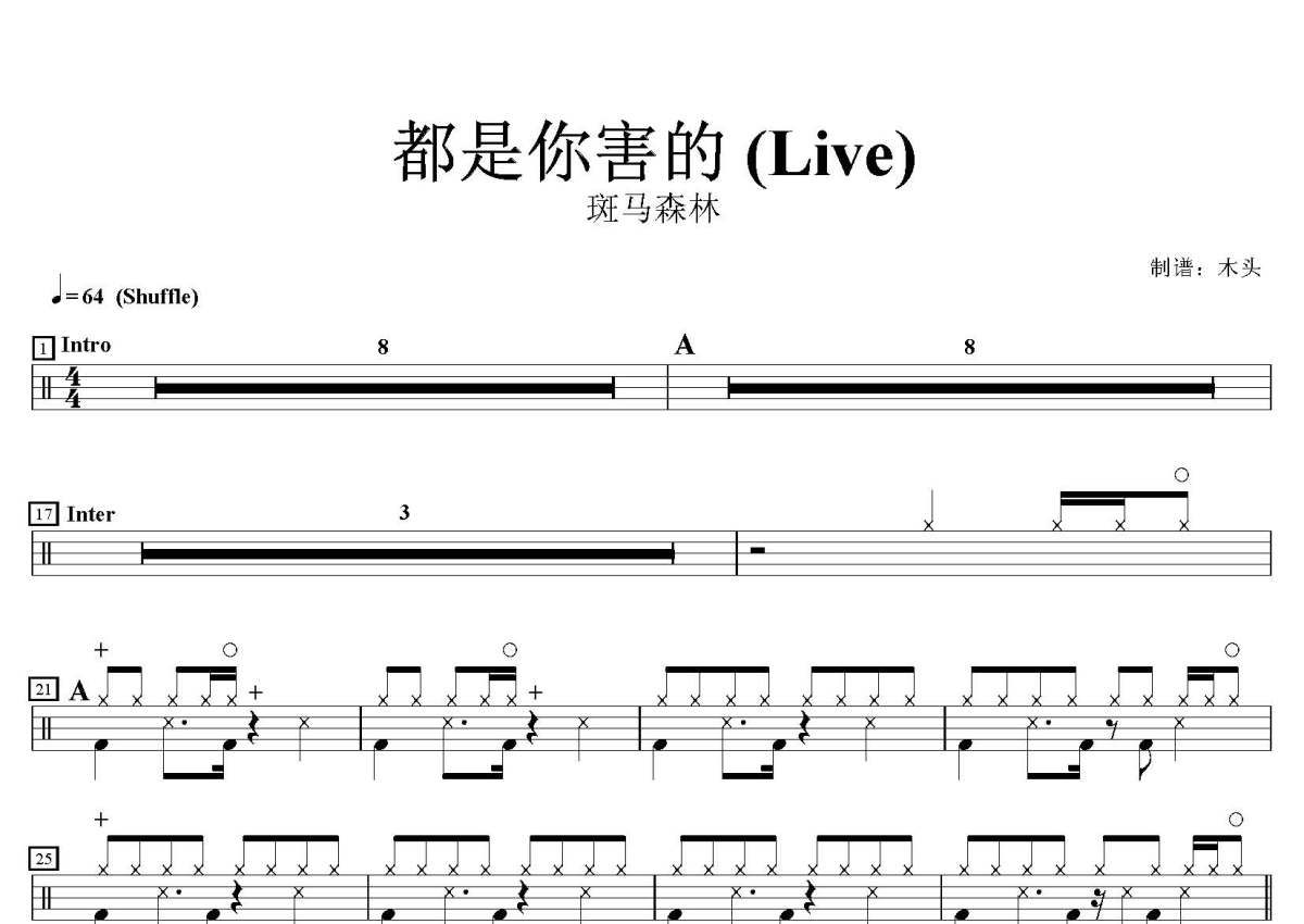 斑马森林《都是你害的》鼓谱 - 架子鼓谱 - Live