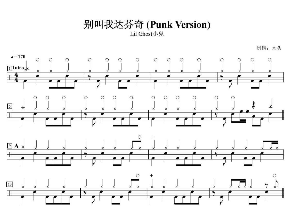 Lil Ghost小鬼《别叫我达芬奇》鼓谱 - 架子鼓谱