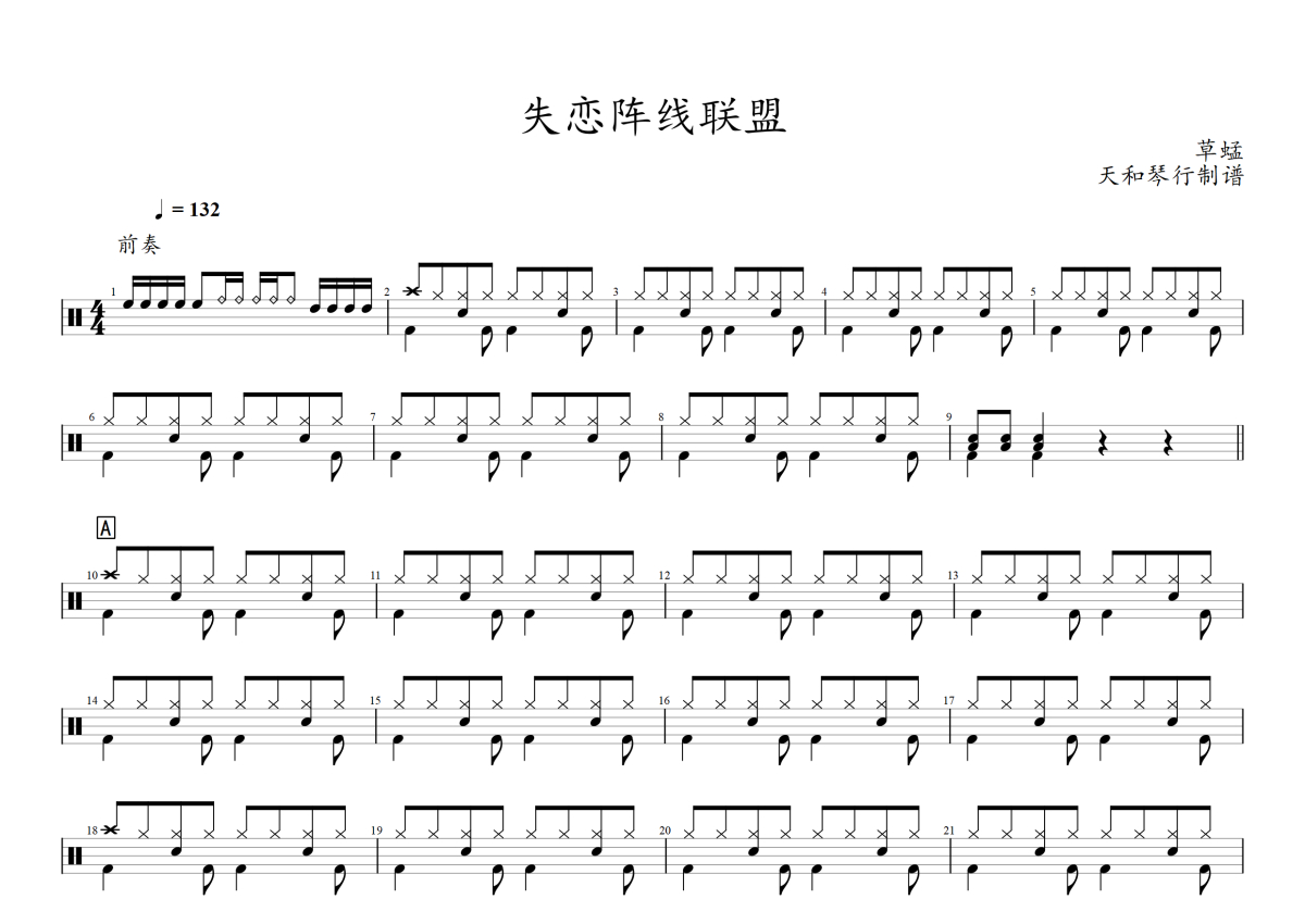 《失恋阵线联盟》是草蜢乐队演唱的一首歌曲,这份架子鼓谱共有两张高清图谱,图谱由 @音符喷血者 编配上传,图谱使用五线谱编配,使用这份失恋阵线联盟架子鼓谱,你将能够轻松地敲打出这首草蜢乐队的失恋阵线联盟,快来尝试吧。