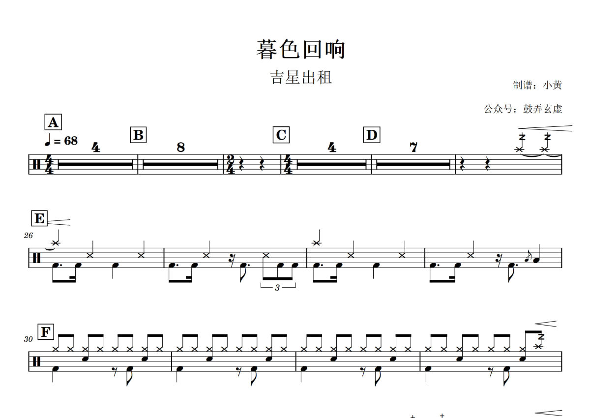 吉星出租《暮色回响》架子鼓谱