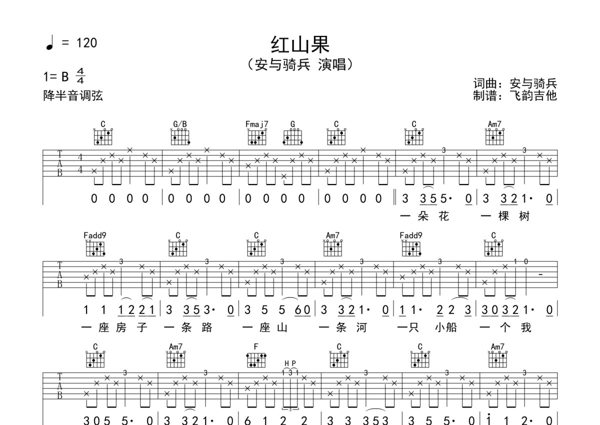 安与骑兵《红山果》吉他谱 - C调弹唱六线谱