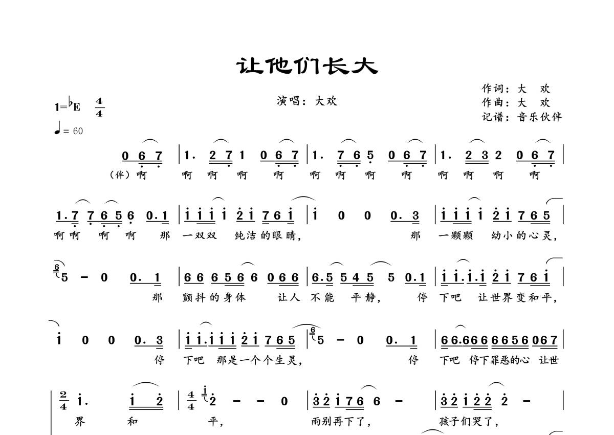 大欢《让他们长大》简谱