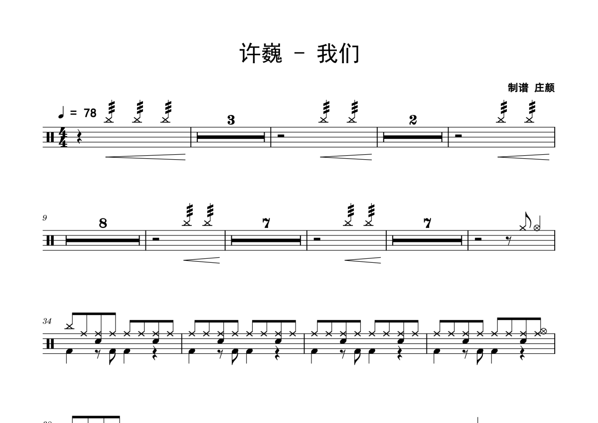 《我们》是许巍演唱的一首歌曲,这份架子鼓谱共有两张高清图谱,图谱由 @庄颜 编配上传,图谱使用五线谱编配,使用这份我们架子鼓谱,你将能够轻松地敲打出这首许巍的我们,快来尝试吧。
