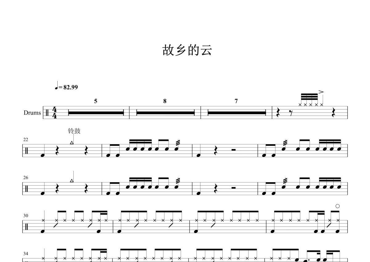 《故乡的云》是费翔演唱的一首歌曲,这份鼓谱共有两张高清图谱,图谱由 @打鼓谱 编配上传,图谱使用五线谱编配,使用这份故乡的云架子鼓谱,你将能够轻松地敲打出这首费翔的故乡的云,快来尝试吧。《故乡的云》费翔。