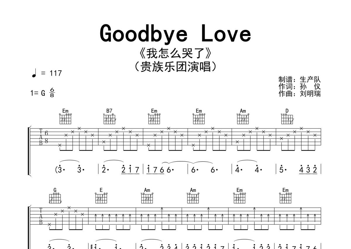 贵族乐团《Goodbye Love》吉他谱 - G调弹唱六线谱 - 精编完美版