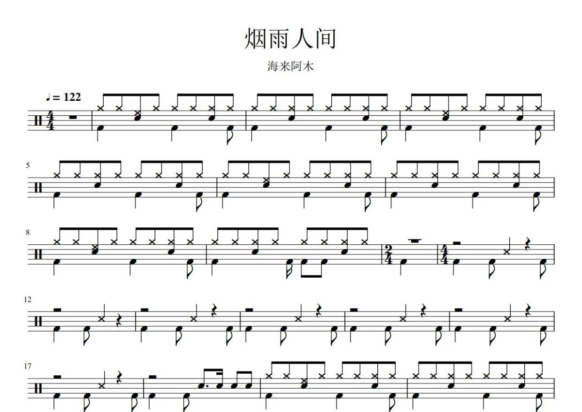 海来阿木《烟雨人间》鼓谱 - 架子鼓谱