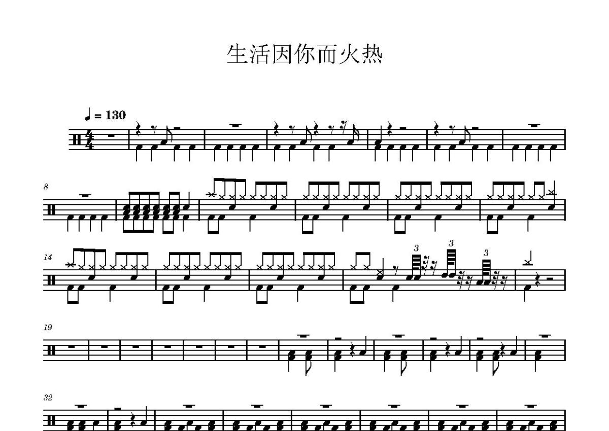 《生命因你而火热》是新裤子演唱的一首歌曲,这份鼓谱共有两张高清图谱,图谱由 @打鼓谱 编配上传,图谱使用五线谱编配,使用这份生命因你而火热架子鼓谱,你将能够轻松地敲打出这首新裤子的生命因你而火热,快来尝试吧。《生命因你而火热》是新裤子于2016年4月7日发行的音乐专辑,共收录10首歌曲,由新裤子担任制作人。 2015年,专辑歌曲《关于夜晚和失眠的世界》入围第5届阿比鹿音乐奖“最佳摇滚单曲奖” [1] 。