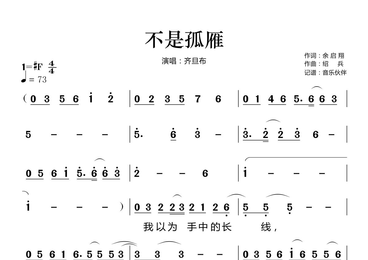 《不是孤雁》是齐旦布演唱的一首歌曲,这份简谱共有两张高清图谱,图谱由 @音乐伙伴 编配上传。