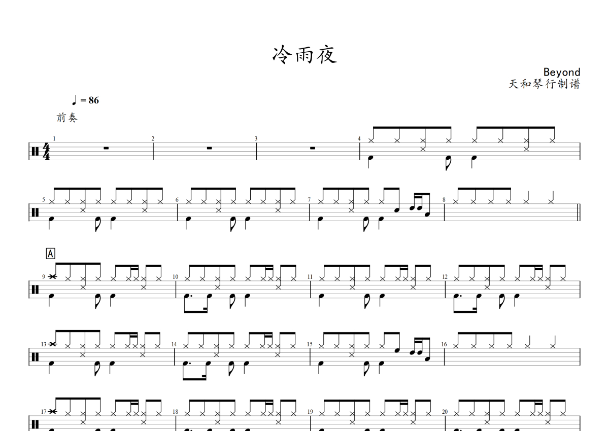 Beyond《冷雨夜》架子鼓谱