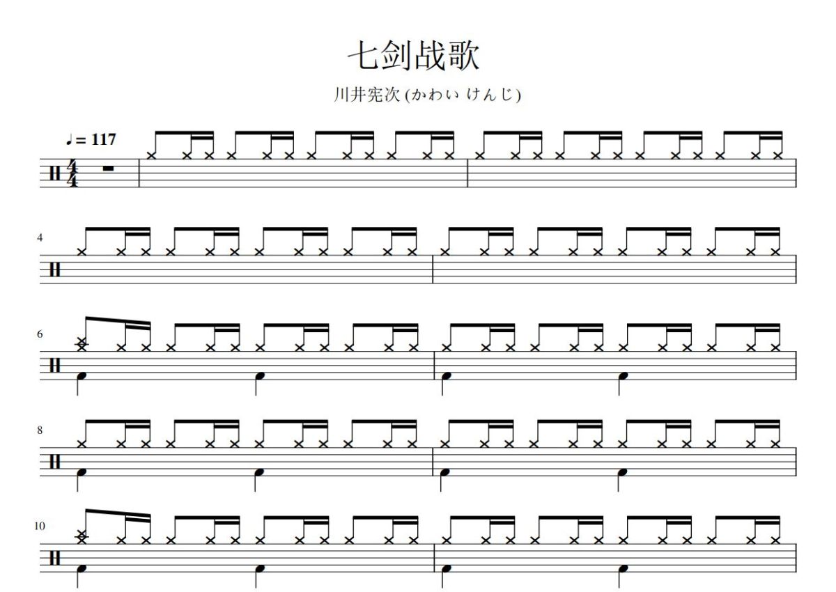 川井宪次《七剑》鼓谱 - 架子鼓谱
