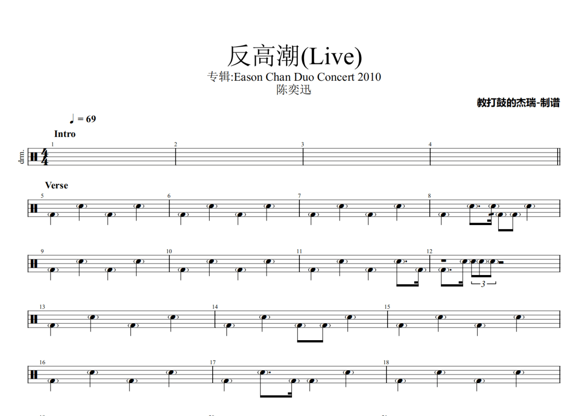 陈奕迅《反高潮(Live)》架子鼓谱 - Eason Chan Duo Concert 2010