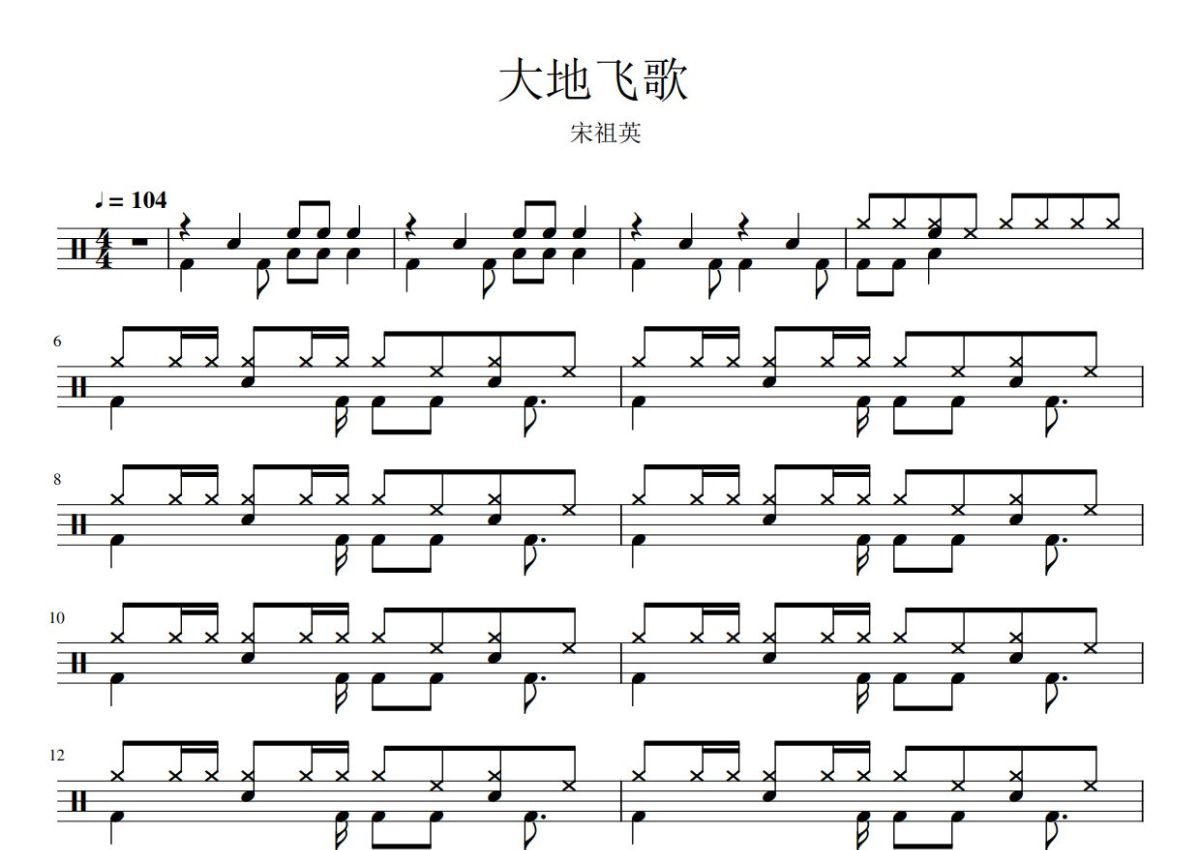 宋祖英《大地飞歌》鼓谱 - 架子鼓谱