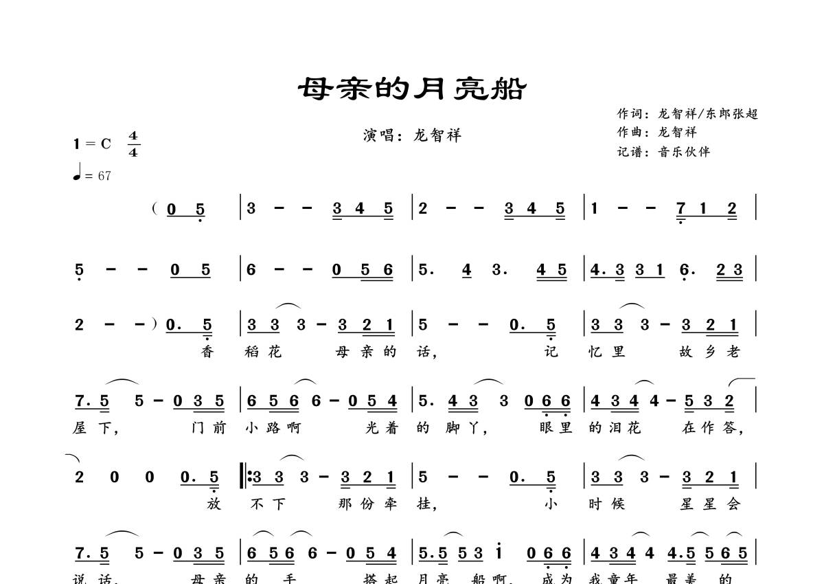 龙智祥《母亲的月亮船》简谱