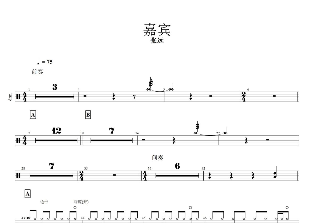 张远《嘉宾》鼓谱 - 架子鼓谱