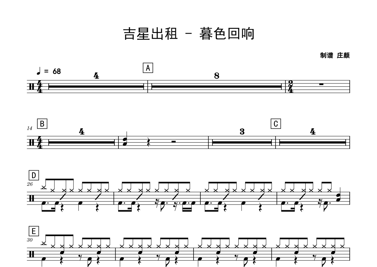 暮色回响架子鼓谱 - 吉星出租