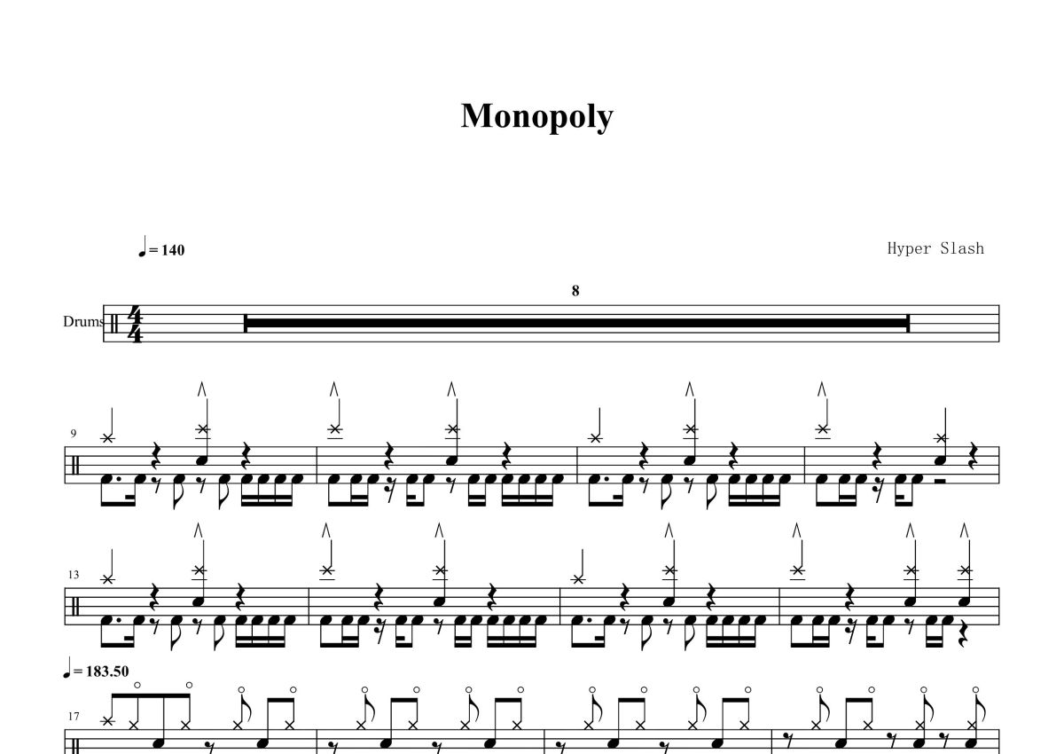 Hyper Slash(超级斩乐队)《Monopoly》鼓谱 - 架子鼓谱