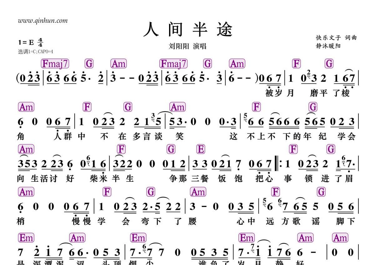 刘阳阳《人间半途》简谱 - 带和弦版